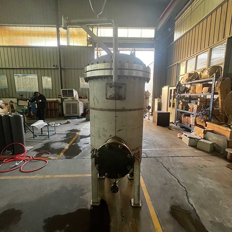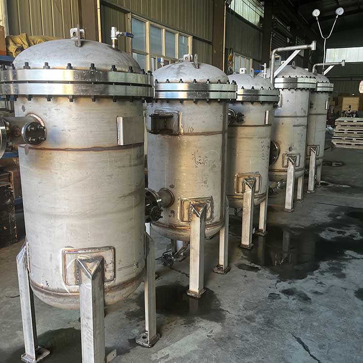 袋式過濾器是一種壓力式過濾裝置,主要有過濾筒體、過濾筒蓋和快開機構、濾袋、加強網等主要部件組成,濾液由過濾機外殼的旁側入口管流入濾袋,濾袋本身是裝置在加強網籃內,液體滲透過所需要細度等級的濾袋即能獲得合格的濾液,雜質顆粒被濾袋攔截該機更換濾袋十分方便,過濾基本無物料消耗。袋式過濾器具備構造合理、密封性好、流通才能強、操作簡便等諸多長處。尤其是濾袋側漏機率小,能正確地保障過濾精度,并能快捷地改換濾袋,使得操作成本下降。濾器內外表面采取機械噴砂拋光解決,平均、易清洗。我們知道,袋式過濾器所采取的過濾方法是側進側出的方法,也可以采取側進底出的方法,通過管道中的壓力將過濾液體介質壓入或抽入袋式過濾器桶體,要過濾的液體介質經由電拋光沖孔支持濾藍承托的過濾袋的過濾,發生變化的固液分別到達液體介質被過濾的結果。